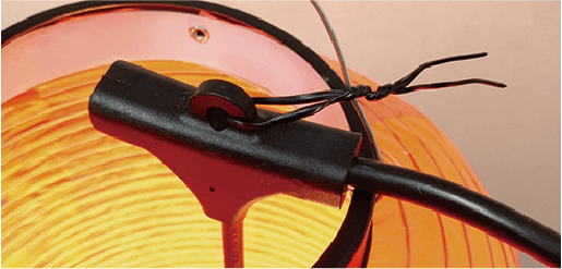 ケーブルとソケットのコードが接続されている部分です。穴に針金を通して提灯とソケットを固定してください
