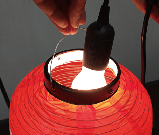 ソケットはなるべく提灯の中に入るように、取手の根元にくくりつけるようにお願いいたします。