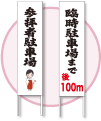 車で訪れる参拝者に、明確で丁寧な案内を行うための駐車場看板です。駐車場までの距離や利用区分をはっきり示し、混雑や誤駐車の防止に役立ちます。境内や周辺景観に配慮したデザインで、円滑な受け入れ体制を整えます。