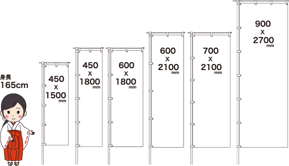 当店ではご使用環境に合わせたサイズでのぼり旗をお作りいたします。