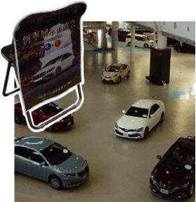 - ・ワゴン什器などの箱型什器に腰巻としてご使用いただけます