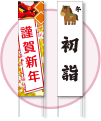 新年のご挨拶を、清々しく、格式高く伝えるための看板です。初詣に訪れる多くの参拝者を迎えるにふさわしい、簡潔で美しい表現が場の雰囲気を引き締めます。毎年繰り返し使える既製品として、年始の準備をスムーズに整えられます。また干支のイラストをあしらったデザインは他に類を見ない独自性があります。